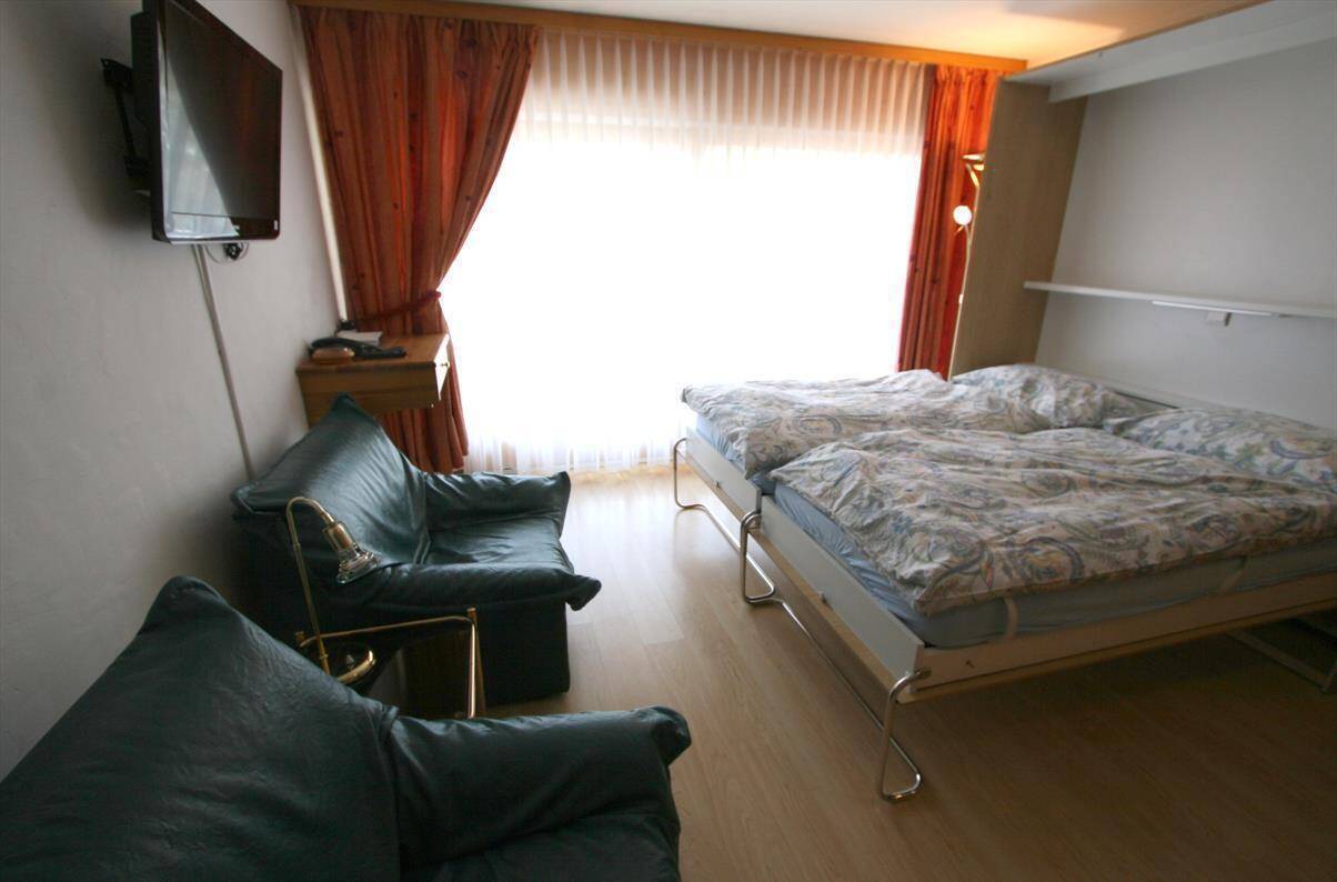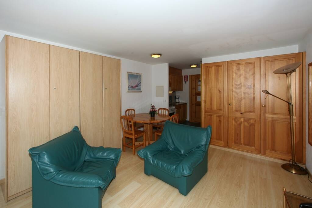 Studio typ B 28m2, 2 people livingroom with chimney, 2 beds, cable TV, WIFI internet connection, 1 kitchen with sink, oven combined with microwave, fridge with freezer compartment, 1 bathroom with lavabo, shower and WC, 1 south balcony, 1st. floor, Sauna in the residence included in the price, 1 outside parking place for Fr. 30.-- per week. In a central, sunny position 400 m from the ski-slopes and ski-lifts. Bus shuttle in front of the building, 200 m from the sports center.