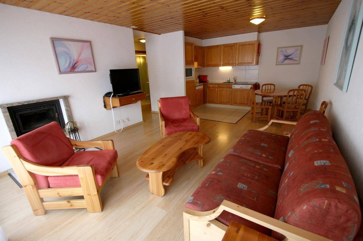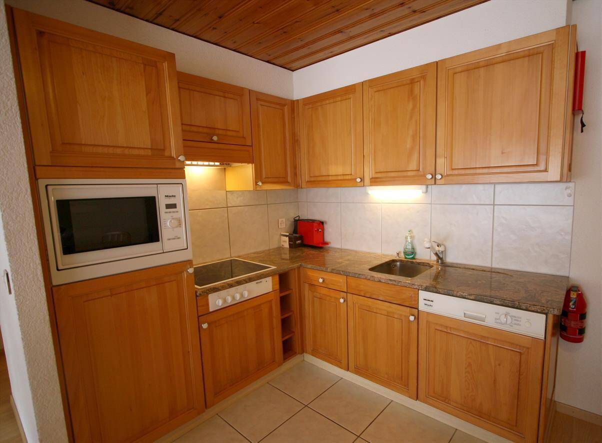 1 bedroom apartment 59m2, type C, 4 people. Living with chimney, cable TV, WIFI internet connection, 1 sofa-bed for 2 people, 1 open kitchen with sink, dishwasher, fridge with freezer compartment and microwave, 1 bedroom with 2 beds, 1 bathroom with lavabo, bath and WC, 1 separate bathroom with lavabo, shower and WC. South balcony. Sauna in the building included in the price. 1 outside parking place for Fr. 30.-- the week. In a central, sunny position, 400 m from the ski-slopes and ski-lifts. Bus shuttle in front of the building, 200 m from the sports center.