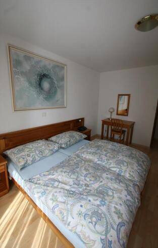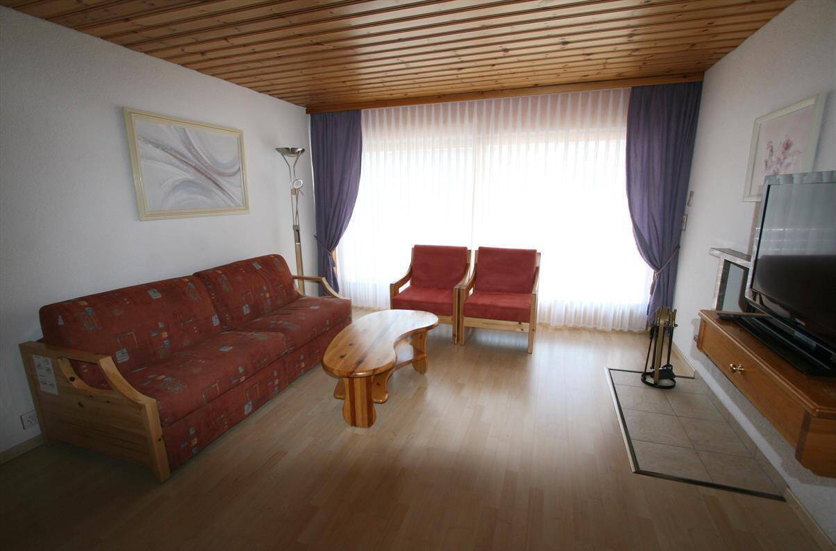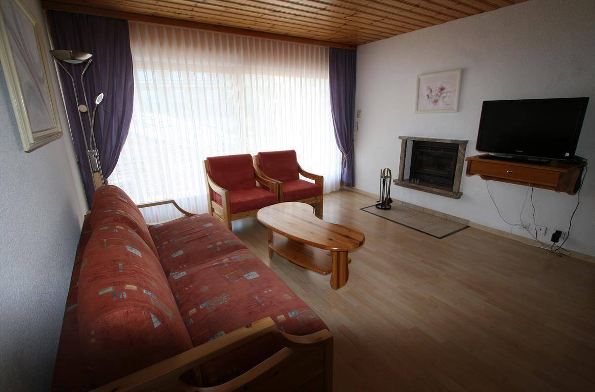 1 bedroom apartment 59m2, type C, 4 people. Living with chimney, cable TV, WIFI internet connection, 1 sofa-bed for 2 people, 1 open kitchen with sink, dishwasher, fridge with freezer compartment and oven combined with microwave , 1 bedroom with 2 beds, 1 bathroom with lavabo, bath, and WC. 1 separate bathroom with lavabo, shower and WC. South balcony. 1st floor. Sauna in the building included in the price. 1 outside parking place for Fr. 30.-- the week. In a central, sunny position, 400 m from the ski-slopes and ski-lifts. Bus shuttle in front of the building, 200 m from the sports center.