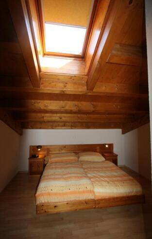 Apartment in duplex 68.50m2, 2 bedrooms, max. 6 people ,Livingroom with chimney, 1 sofa-bed for 2 people, cable TV and WIFI internet connection, 1 kitchen with sink, diswasher, fridge with freezer compartment, and oven combined with microwave. 1 separate WC. 1st floor: 1 bedroom with 2 beds with 1 bathroom, with bath, lavabo, and WC. 1 bedroom with 2 beds and 1 separate bathroom, with lavabo, shower, and WC. South balcony. 3rd floor. Sauna in the Residence included in the price. 1 outside parking place for Fr. 30.-- per week. in a central, sunny position 400 from the ski-slopesand ski-lifts. Bus shuttle in front of the building, 200 m from the sports center.