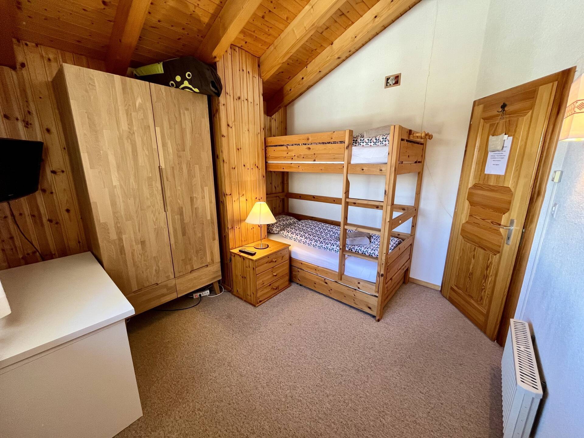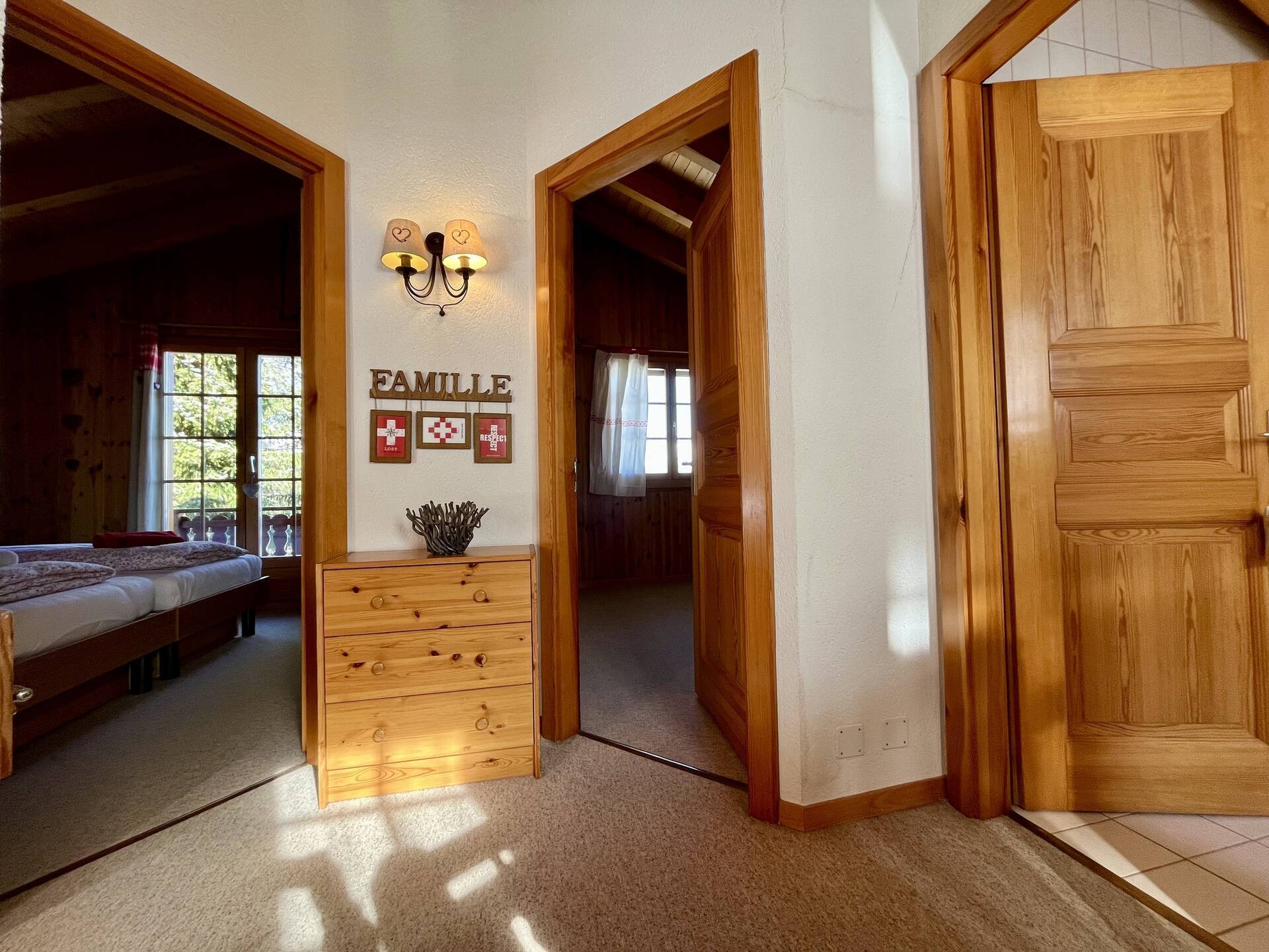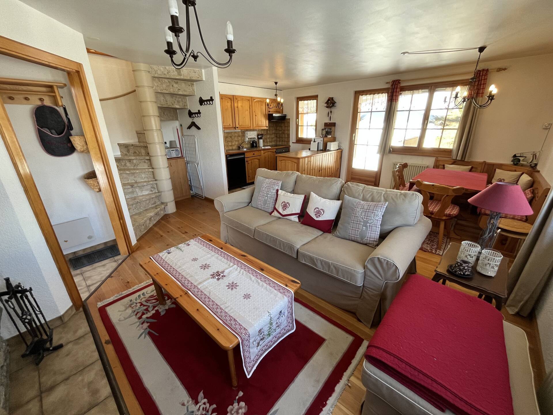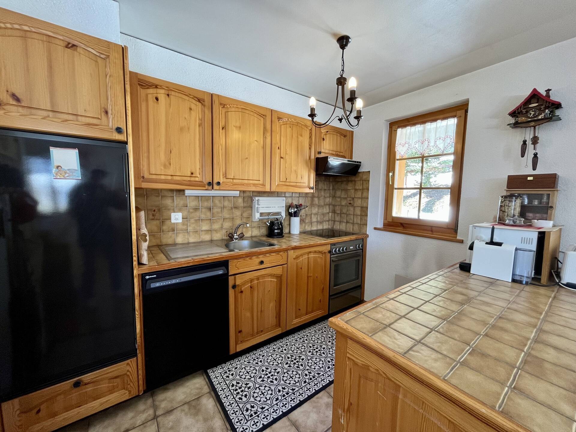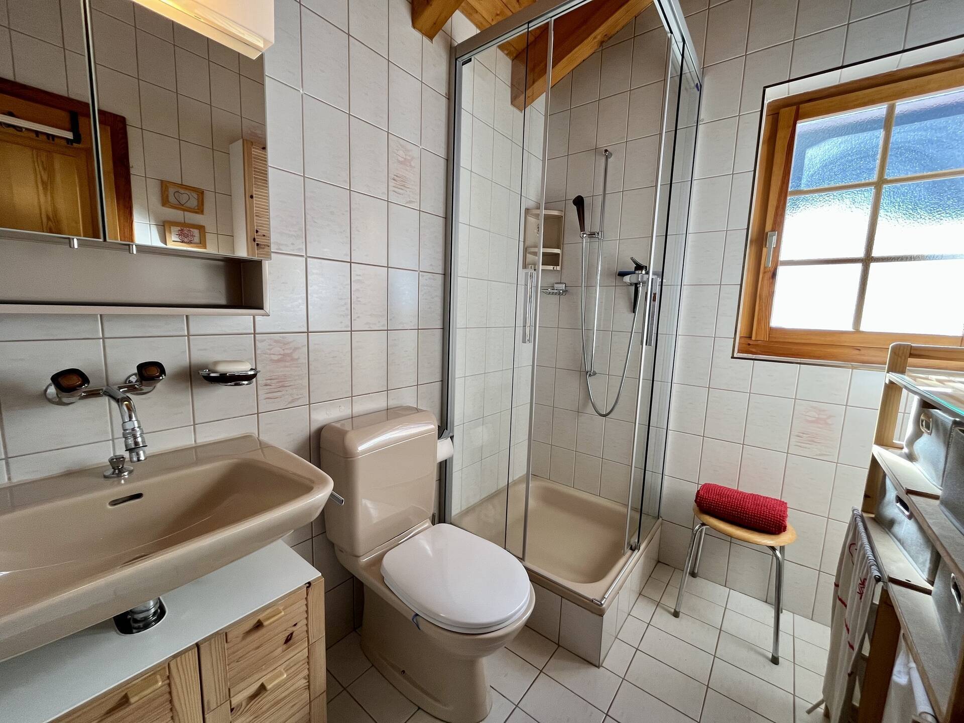 Nice chalet, 90m2, 4 rooms, 6 people, on 2 floors, on the ground floor; 1 large living room with 1 fireplace with insert, 1 cable TV, Wifi includet, direct access to the garden and the terrace, 1 kitchen open to the living room including 1 sink, 1 vitroceram cooker with 1 oven, 1 fridge with 1 17l freezer, 1 dishwasher, 1 microwave, 1 Nespresso capsule coffee machine, 1 bathroom with shover, WC and sink. On the 1st floor; 1 master bedroom with 1 double bed for 2 people, 1 bedroom with 2 beds, 1 bedroom with 2 bunk beds, 1 bathroom with sink, bath and WC. Babycot 120/60 cm. Balcony, Terrace, large garden, 2 parking spaces. Very quiet and sunny location (except from 01.12. To 01.02.) Magnificent view of the Alps. Easy access by car except in winter if snow on the road 4x4 roads or chains. 300m from the cable car and shops, 500m from the sports center.