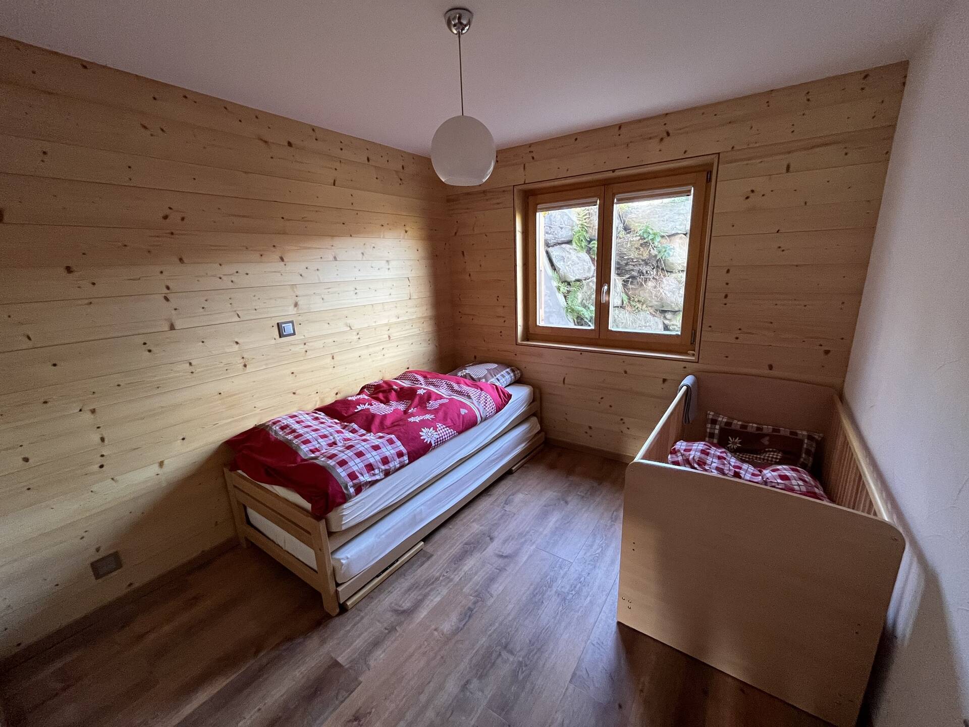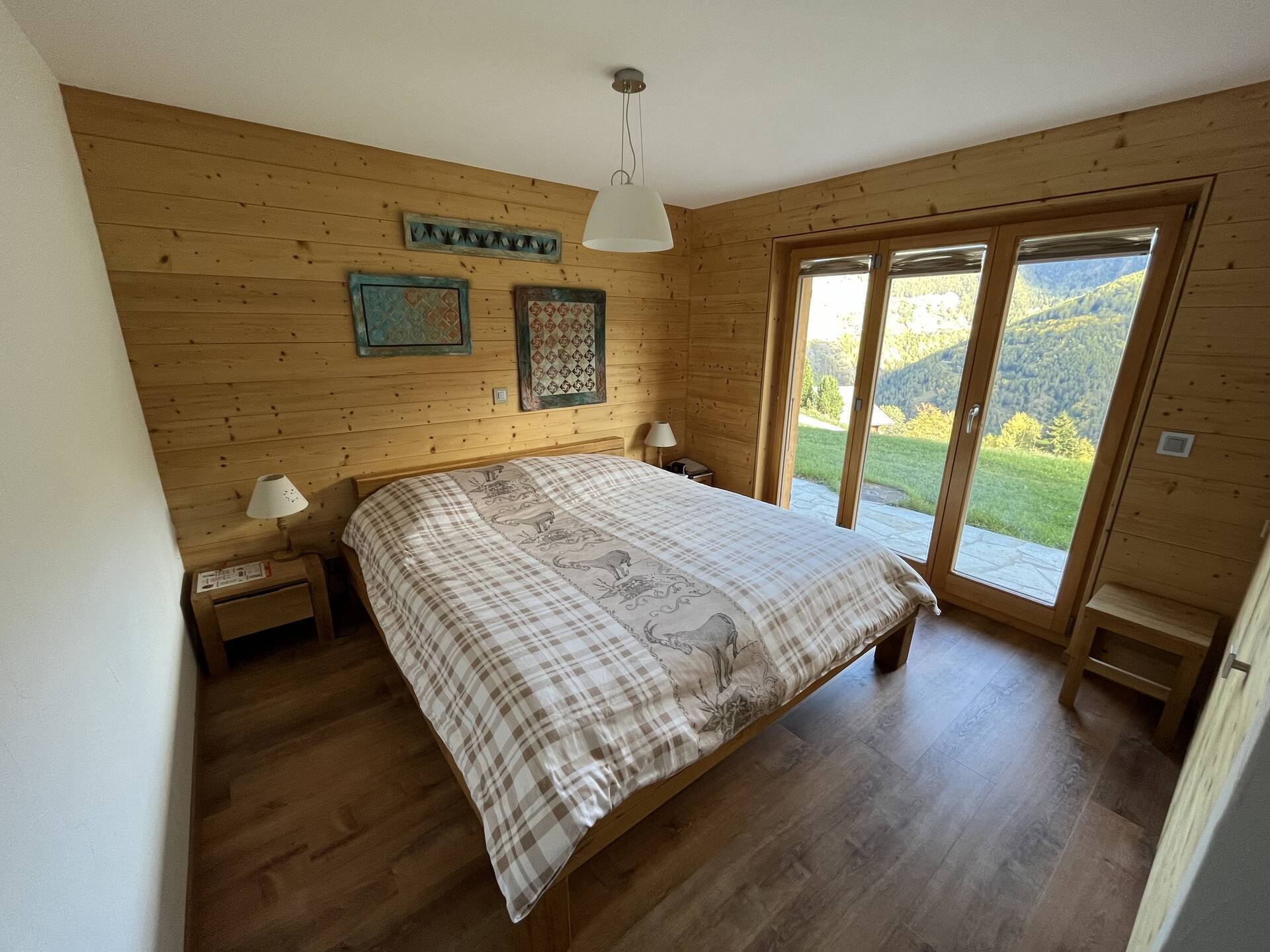 Magnificent chalet, modern, for 6-8 people in Bleusy, 120m2. Large living room, TV, Wifi, 3-seater sofa, 2 armchairs, 1 stove, dining area. Kitchen with sink, fridge, freezer, ceramic stove, oven, dishwasher, 1 toilet, sink and washing machine. On the ground floor: 1 bedroom with 1 bed for 2 people. 1 bedroom with a trundle bed, 1 bedroom with a bed for 2 people. 1 bathroom with Italian shower, sink and WC. Mezzanine: 2 mattresses for 2 people. Terrace, balcony, garden. 1 parking space. Quiet and sunny location. Magnificent view of the Alps and the Valley