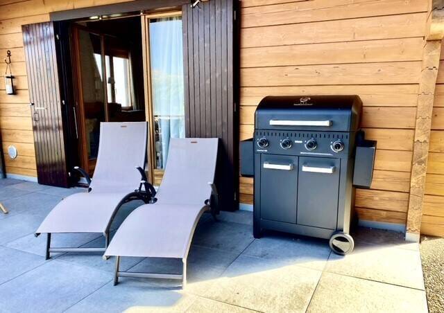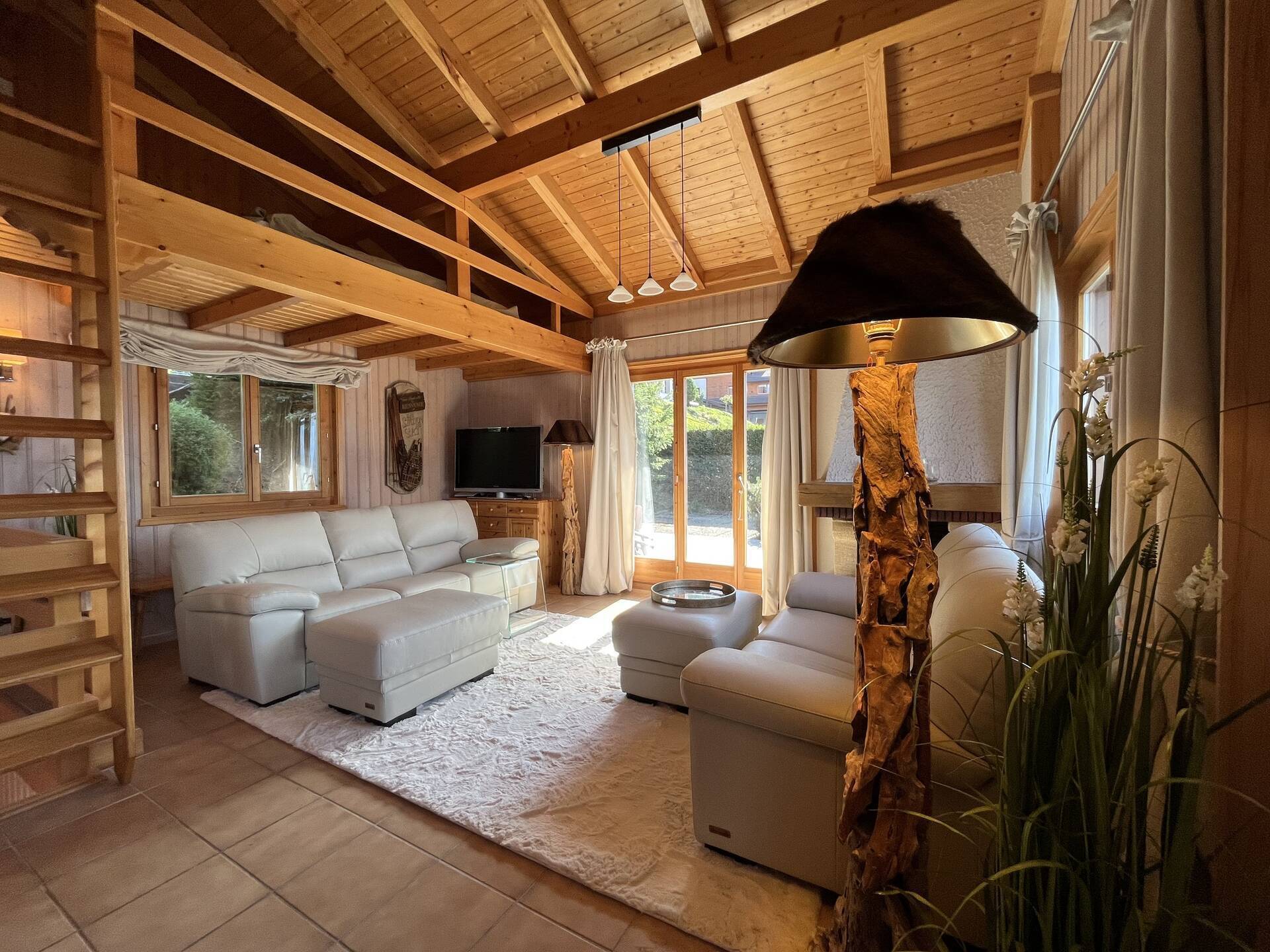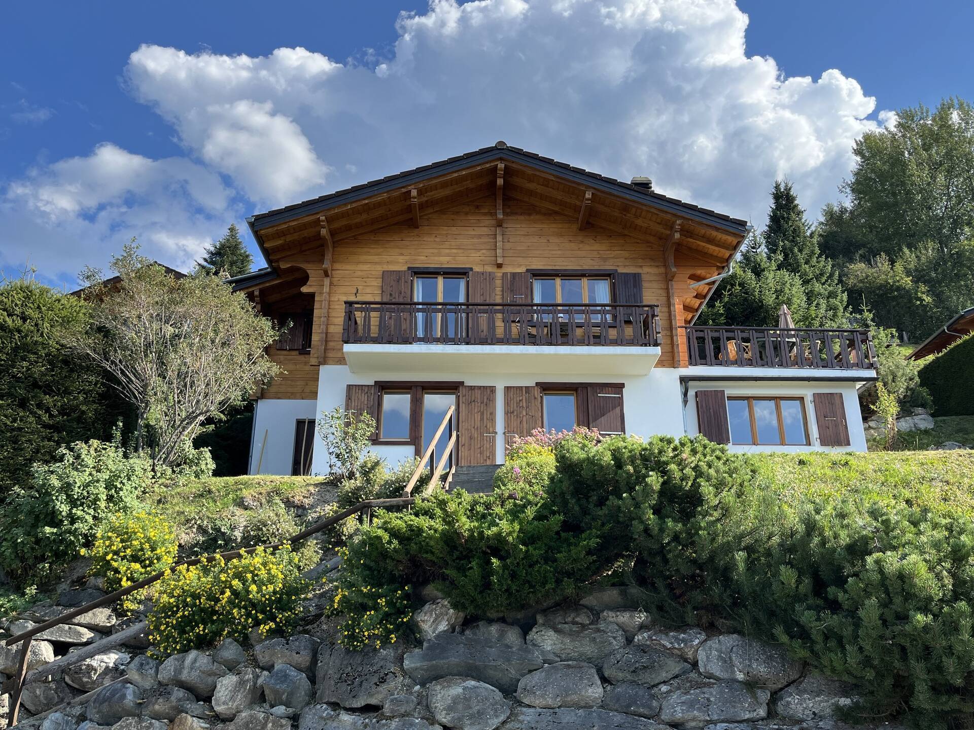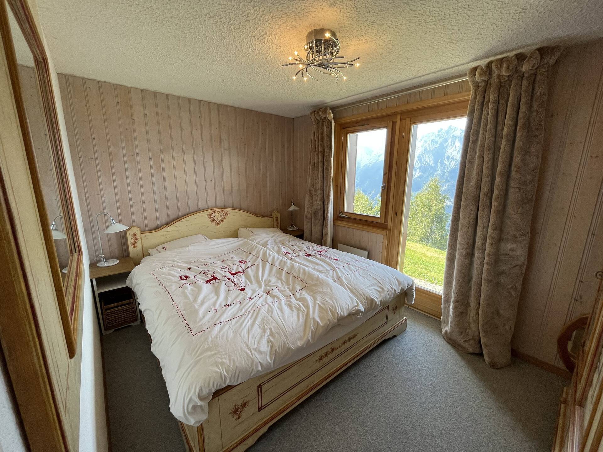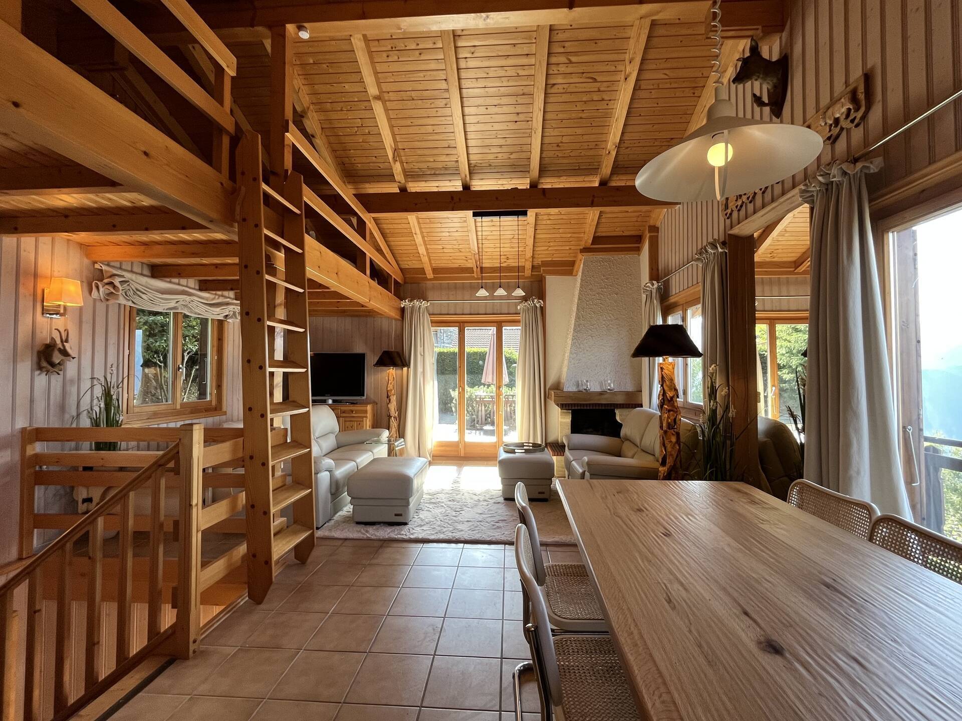 Chalet très sympathique, 4 pièces pour 6 personnes, 100m2, vue imprenable sur la vallée, ensoleillé et calme. A l'étage : sas d'entrée, 1 WC séparé, 1 grand séjour, TV et Wifi, coin à manger, cuisine bien agencée, ouverte et équipée avec lave-vaisselle, 4 plaques de cuisson, 1 frigo, micro-ondes. 1 mezzanine. Au rez de chaussée : 1 salle de bain avec douche, lavabo et WC, 1 chambre avec 1 grand lit pour 2 personnes, 2 chambres avec 2 lits côtes à côtes, 1 salle de bain avec baignoire, lavabo et WC. 1 grande terrasse extérieure avec jardin, 1 place de parc extérieure, hiver bus navette gratuit à 100m. A 900m des remontées mécaniques, des pistes de ski et des commerces. Situation tranquille et ensoleillée. Vue magnifique sur les Alpes et la Vallée du Rhone.
